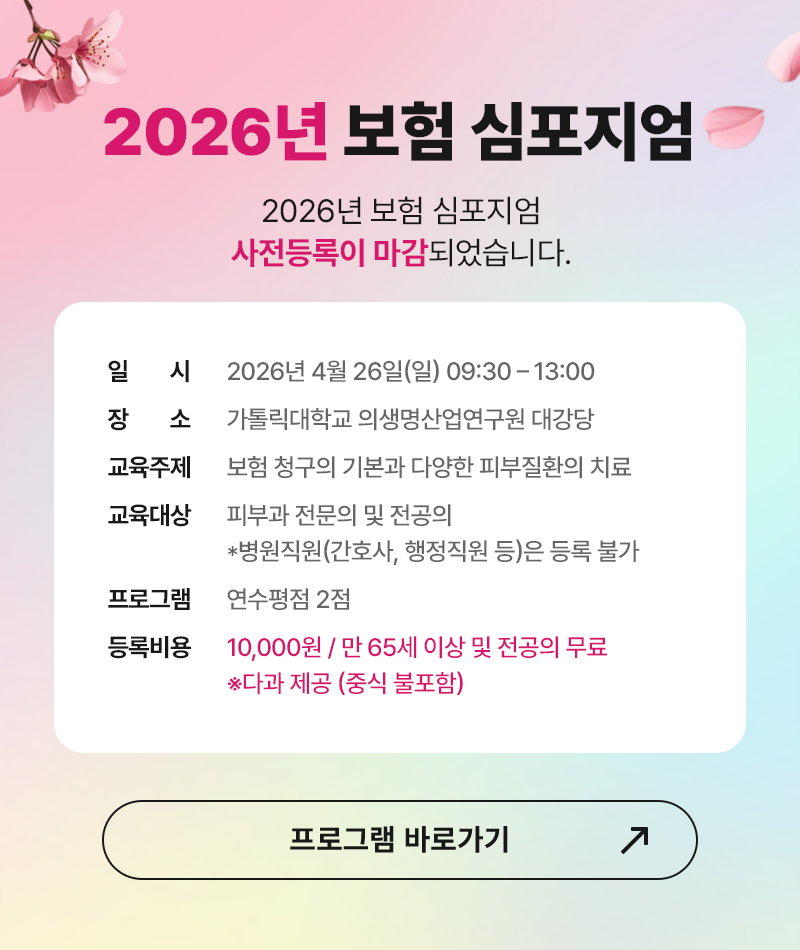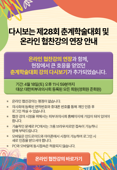국민의 피부건강 증진과 피부과학의 학문적 발전에 기여하며 회원의 피부과학에 대한 지식함양과 회원의 권익보호를 목적 설립된 단체입니다.